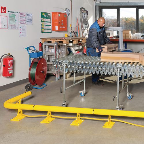 The high-quality thick-walled steel tubes come welded to metal uprights, with moulded plastic plugs inserted in the ends. The solid steel base plates are 10mm thick. Powder-coated finish, protecting against knocks and scratches. For longer continuous lengths, use connecting adapters. The collision bars fix to the floor with rawl plug bolts or through bolts. (Supplied separately).