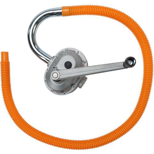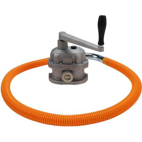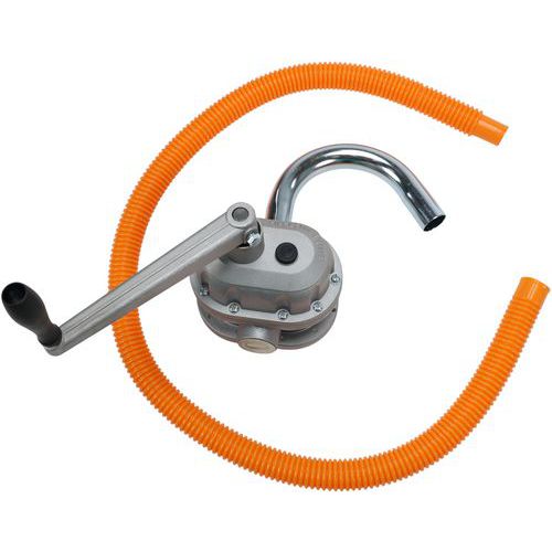Rotary pump for low-viscosity liquids. With a calibrated flow rate of 1 litre per revolution, this pump ensures the precision required for accurate dosing and filling of small to medium-sized containers. Suitable for solvent-free and kerosene-free low-viscosity liquids. Aluminium pump body and steel dip tube.