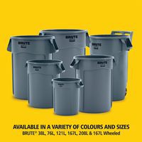 Rubbermaid Round BRUTE Industrial Waste Containers, Capacity: 121 L, O/A height: 692 mm, O/A width: 635 mm