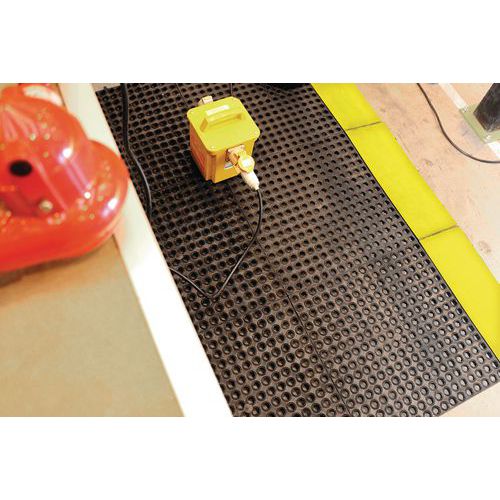 - Provides basic anti-fatigue properties and is made from recycled rubber and plastic.