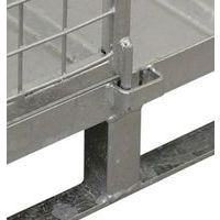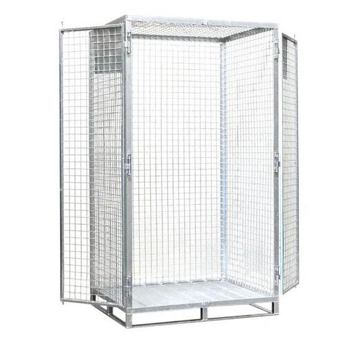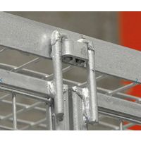Mesh pallet cages with hinged doors in Europallet size 1200mm x 800mm. Hot dip galvanised for a sturdy, stylish finish. Easy to lift with a forklift or pallet truck.