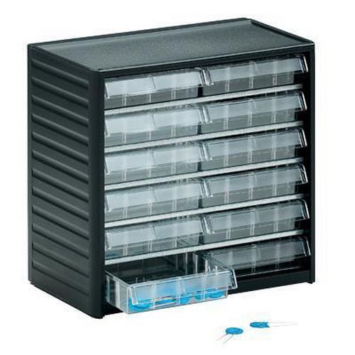 Strong cabinets with clear drawers, available in 7 different configurations.