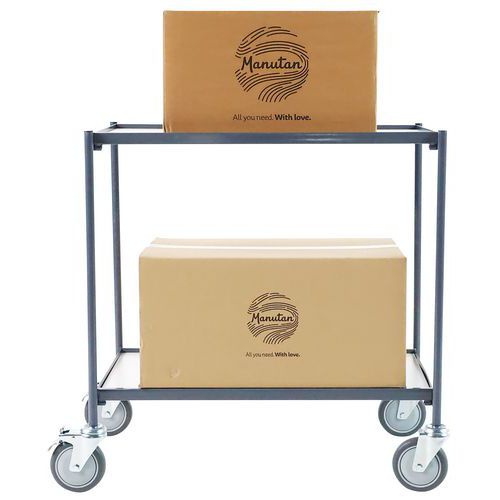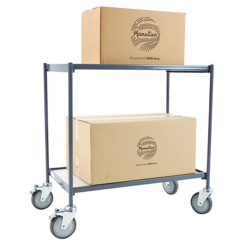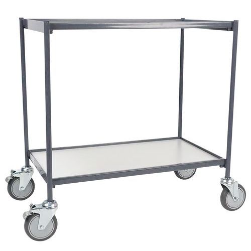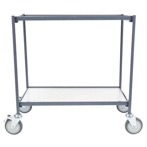 Trolley with wooden shelves and a 200-kg load capacity. MDF shelves, resistant to heavy loads. Tubular steel frame, which provides sturdy and durable support. Highly versatile, it's easy to use in a variety of situations — whether you're moving tools, artwork, product stock or office supplies. Equipped with four swivel castors which allow you to freely navigate different spaces including workshops, offices or warehouses.