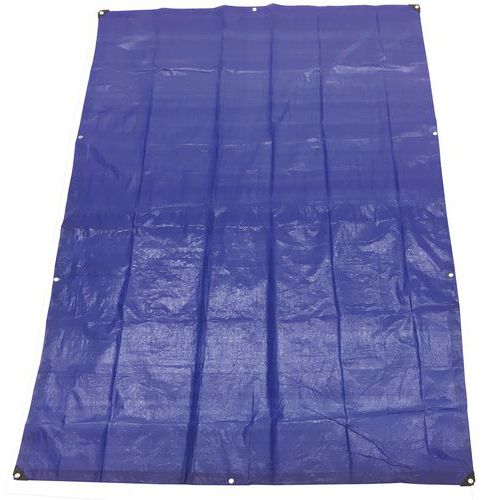 Protective tarpaulin with hem all the way around. This waterproof tarpaulin provides protection against grease, paint, dust and rain for professionals. Fixing eyelets every metre for easier fitting and use. Single use recommended to ensure the protection of your floors, equipment or stored objects.