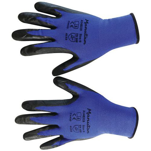 Size 10 Knitted Work Gloves - Nitrile Coat - Oil Resistant - Manutan Expert