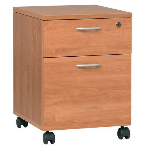 Filing cabinet featuring particle board drawers and melamine surfaces. Fitted with anti-topple wheels. Cylinder lock (1 drawer). Easy-to-install, efficient and strong