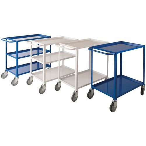 Low cost, welded steel trolleys. Fitted with 4 multi-directional stem castors.
