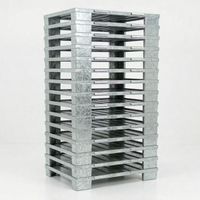 - Heavy Duty Steel Plate Pallets with powder coated or hot dip galvanised finish. Available in standard Europallet size (1200mm x 800mm). Load capacity of 1250kg allows for storage and internal transport of heavy materials. A raised edge of 20mm prevents goods shifting in transit. Pallet stands on 4 stable legs with an insertion height of 100mm.