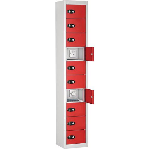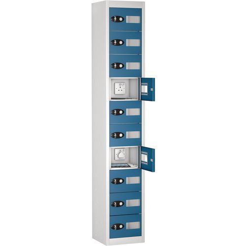 Charge multiple tablets/media safely and securely in these 10 or 15 door lockers.
