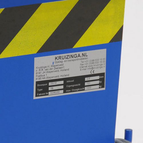 Kruizinga Tipping Skips with Forklift Guides, Capacity: 600 L, Mobile: yes, Colour: Blue, O/A width: 1070 mm