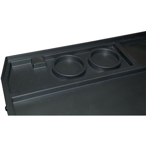 - The trolley comes with a bottle holding tray that fixes to the perforated walls for easy access.