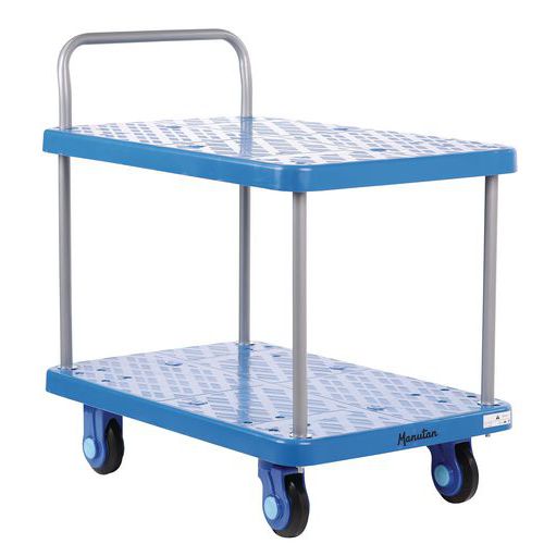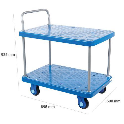Two Shelf Plastic Trolley - Two Tiers - 300kg Capacity - Manutan Expert