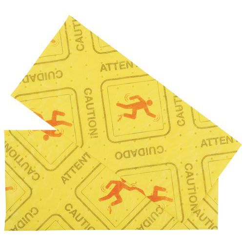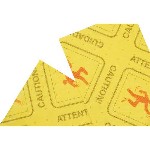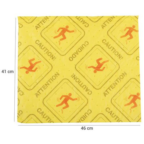 Absorbent with warning message for additional safety. Wipe away liquids and prevent the risk of slipping. High-visibility colour and safety pictogram encourage vigilance. High absorption capacity for non-chemical industrial liquids. Ideal for heavy-traffic areas with hazards of slipping, tripping and falling