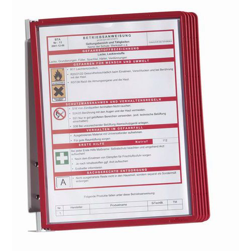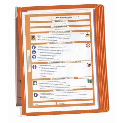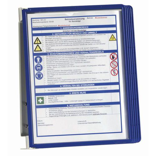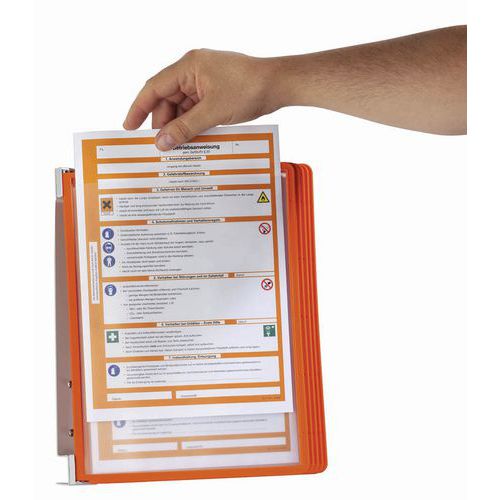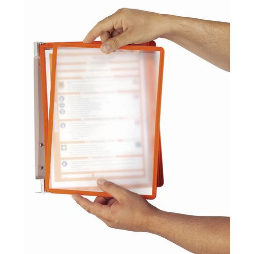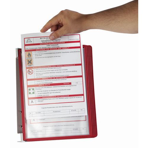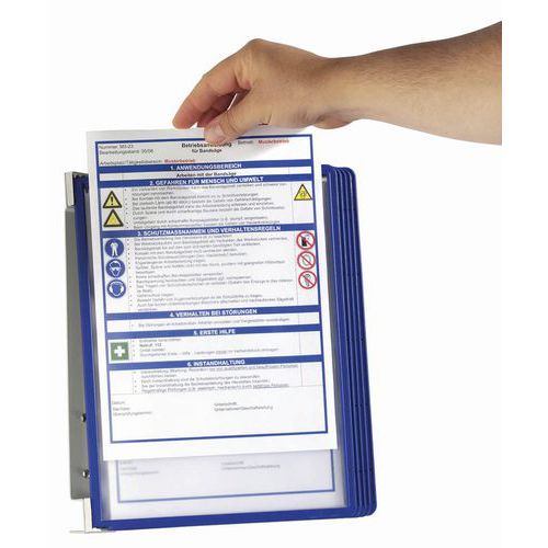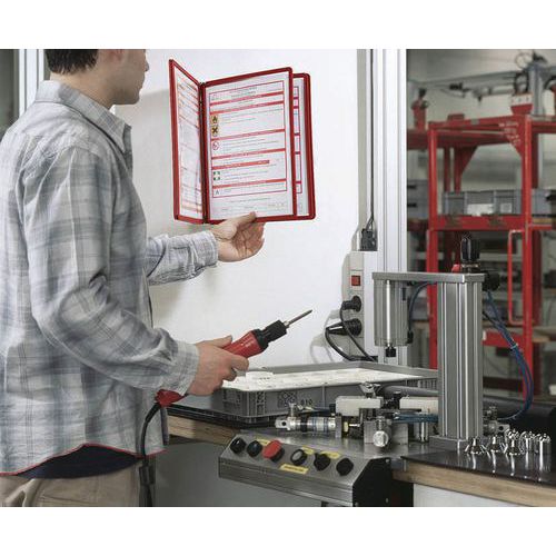 Instant and effortless access to all your documents. Interchangeable A4 pockets. Quick and easy wall mounting. Support is solid thanks to its metal frame. For workshops, sales areas and showrooms