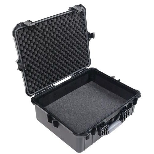 A waterproof, dustproof and shockproof case. Equipped with self-locking stainless steel hinges at 90°. Locks by pushing the button under the handle. The foam is notched and gives the contents a high level of protection. Pre-cut memory foam bottom, which moulds to the shape of any object. 10-year guarantee.