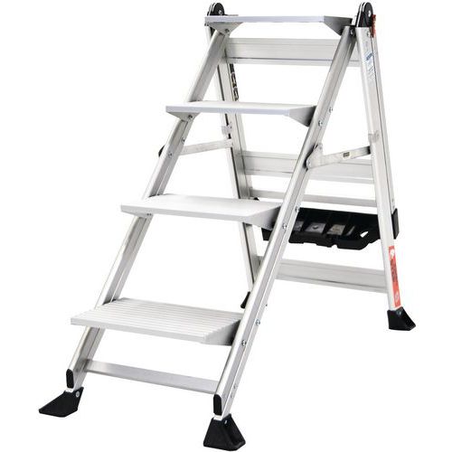 Ideal for jobs that require both frequent climbing up and down and those that require long periods of standing. The handrail includes a built-in comprehensive tool tray that folds down to use as a simple hop-up. The step folds for easy storage. Large moulded feet are perfect for a range of flooring types. Lifetime warranty. A maximum load of 150kg. Conforms to the latest EN14183 safety standards. Max. load (kg) : 150 kg